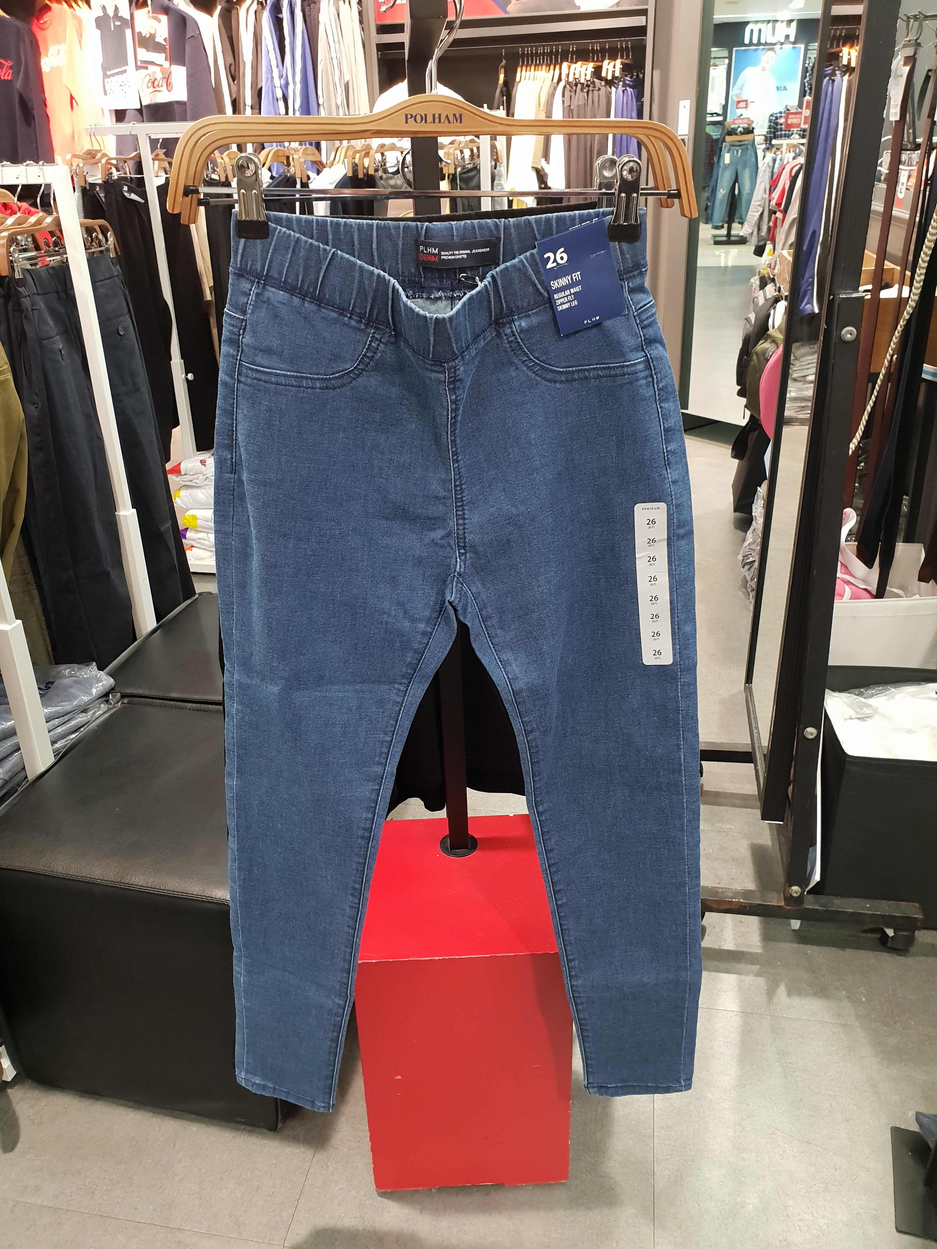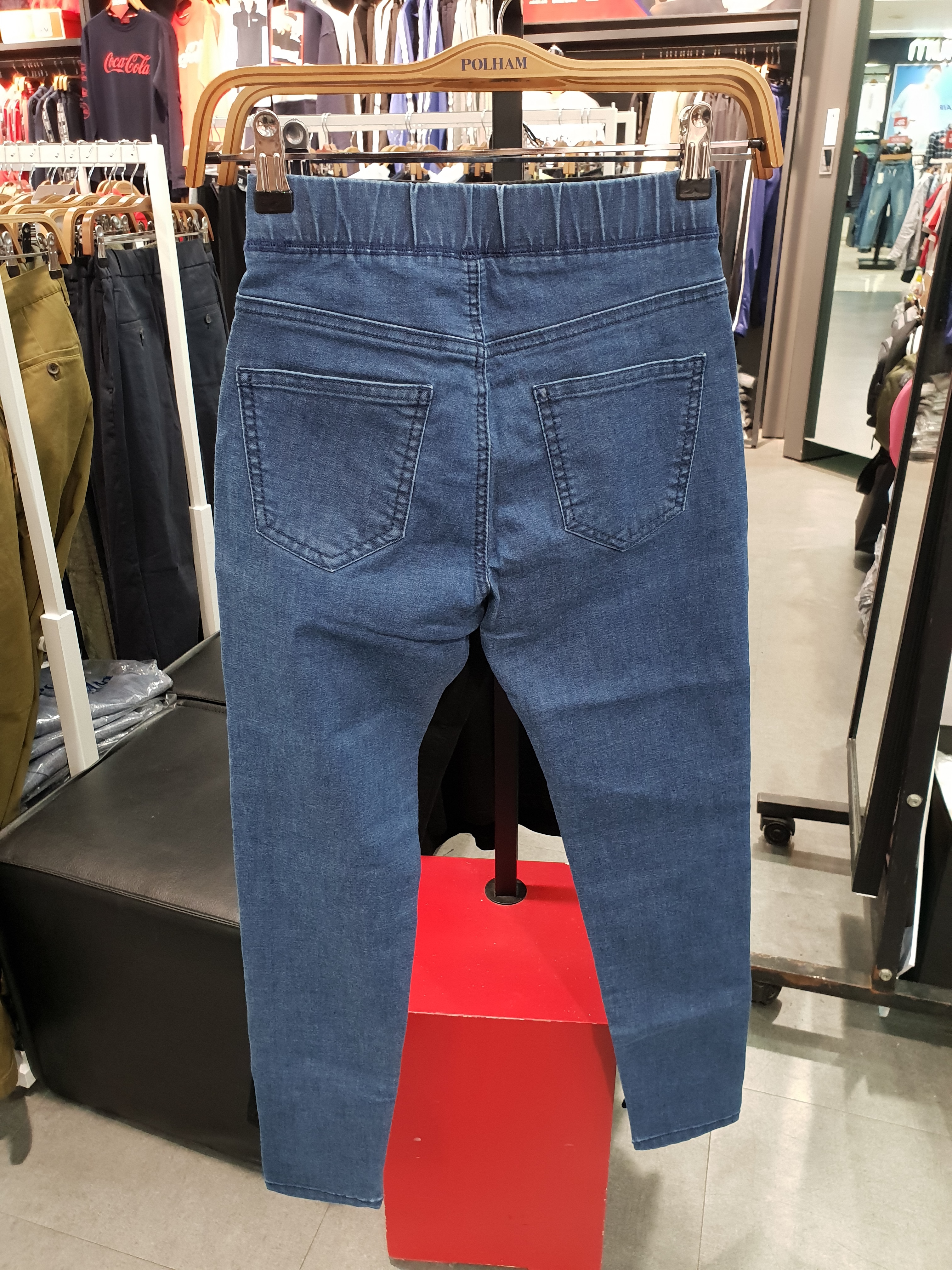 폴햄 여성 스키니핏 데님 제깅스 팬츠입니다. 허리 밴딩과 스판력이 좋아 활동시에도 편하며, 롱스타일의 상의와 코디하시면 레깅스처럼 코디하기 좋습니다.
