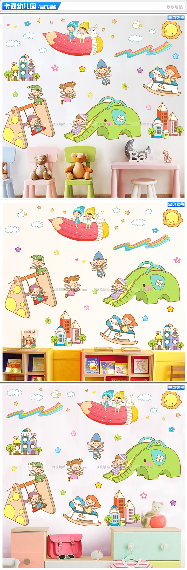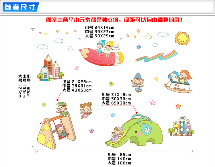 幼儿园儿童娱乐城卡通房子墙贴小朋友荡秋千骑木马滑滑梯贴纸贴画
