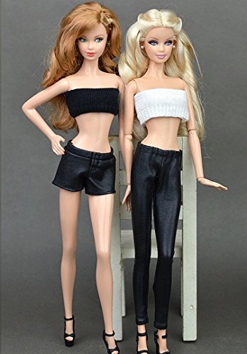 (Studio One)/Dolls/Accessories/DIRECT FROM USA/Fashion Elastic Black Leather Bottoms Pants Trousers for Barbie Dolls best gift 2Pcs