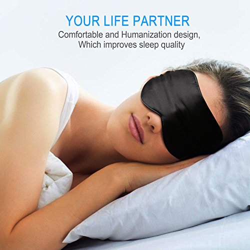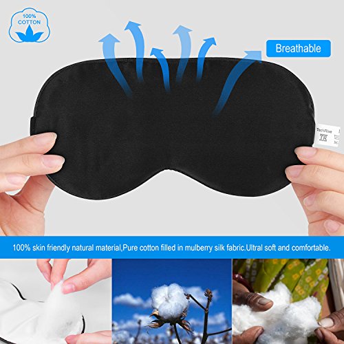 Sleep Mask,Eye Mask,TechRise Skin-Friendly Pure Natural Silk Fabric and Pure Cotton Filled Sleeping Mask with Ear Plug and Ajustable Comfortable Strap - Black