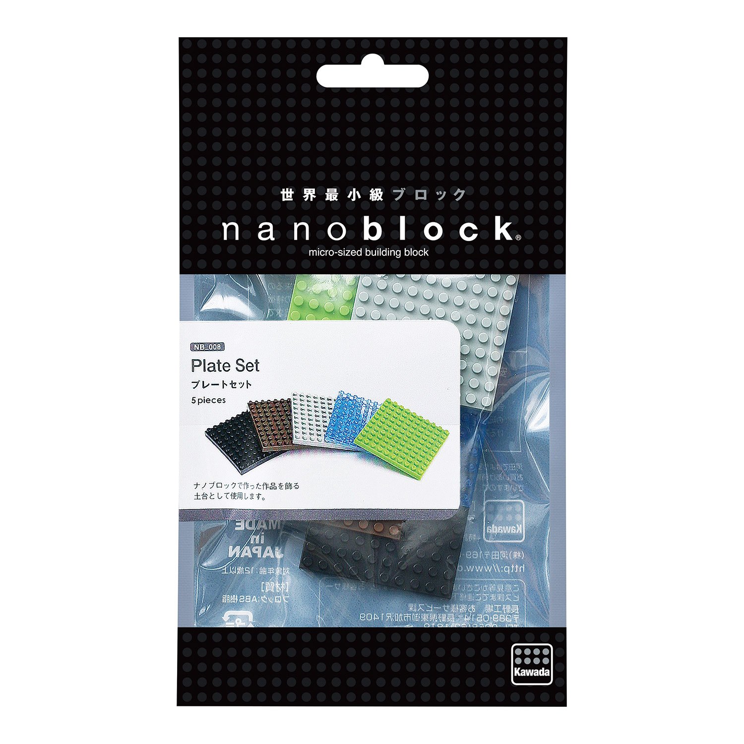 There are five 10 × 10-pitch plates (clear blue, black, brown, light green, gray one each).