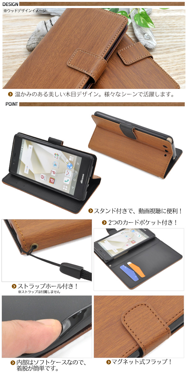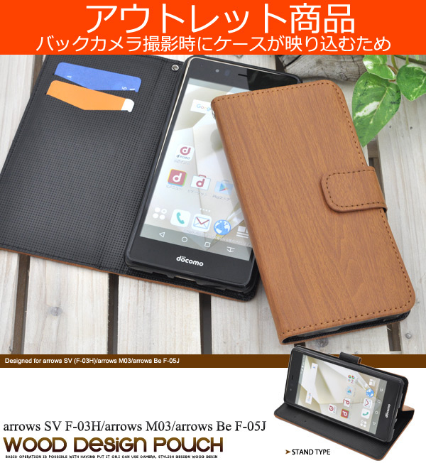 arrows SV (F-03H)/arrows M03/arrows Be?F-05J用ウッドデザインスタンドケースポーチ
