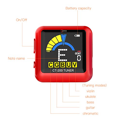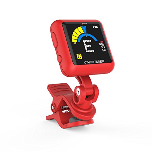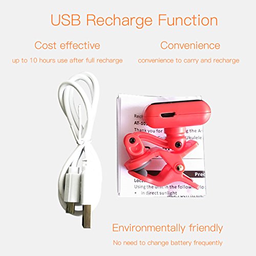 Clip Tuner Rechargeable for Guitar Bass Ukulele Violin 360 Degree Rotatable with USB (red)