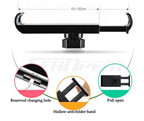 -. Feature : 360° rotation, easy adjustment for optimal viewing You can hang your cell phone in your like the location with any position you prefer, turn any angle, bends different shape / Stent of the max stretch 200mm can be compatible with most of pads and phones in the market,except it belows 3.5 inch. Two different length combine freely / High hardness roll ball in the back ,360 degree rotate make using more convenience / Easy 30-seconds installation, no holes, no drill, clamps to object of up to 1.77 inches in thickness, including your desk, tablet, bedside, kitchen, etc / Perfect for view phone & enjoy music & phone games in bedroom, gym, office, exhibition, kitchen and more, ideal for turn by turn navigation and hands free voice chat