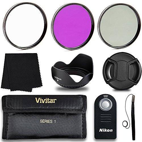 THE AMAZING KIT INCLUDES - remote trigger device, lens filter pouch carry case, lens hood, snap on lens cap, lens cap keeper, microfiber cleaning cloth, free mini flexible tripod..