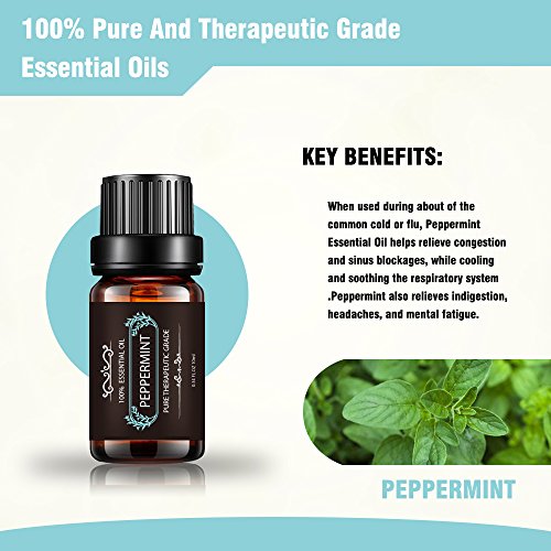 - » AROMATHERAPY STARTER GIFT SET: This set contains 6 bottles, 10ml each. Flavors included: Lavender (Lavandula angustifolia), Tea Tree (Melaleuca alternifolia), Eucalyptus (Eucalyptus globules), Lemongrass (Cymbopogon flexuosus), Sweet Orange (Citrus sinensis), Peppermint (Mentha piperita). Packaged in dark amber bottles for retaining maximized freshness