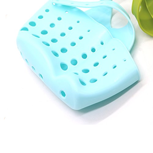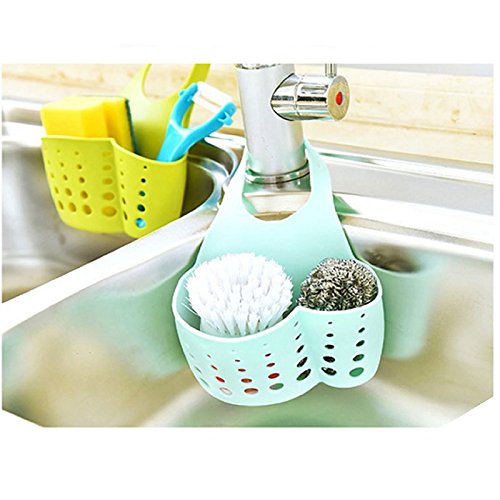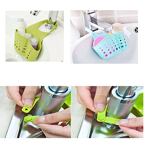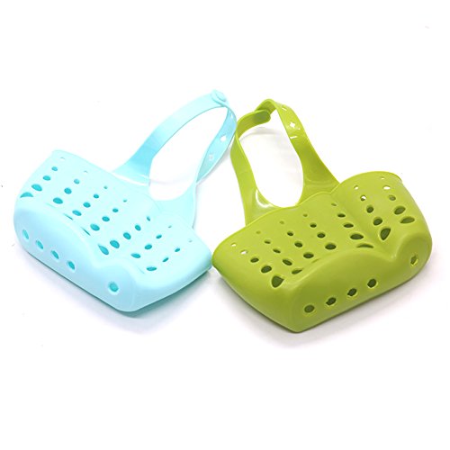 HUELE 2 Pack Sink Hanging Storage Bag Basket,Adjustable Sink Organizer,Plastic Sponge Storage Rack Basket( Blue and Green)