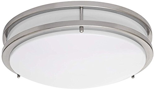 This Stunning LED Double Ring Ceiling Designed Light, Antique Brushed Nickel Flush Mount is designed to blend into any decor for a clean, fresh appearance and produce uniform diffused light.