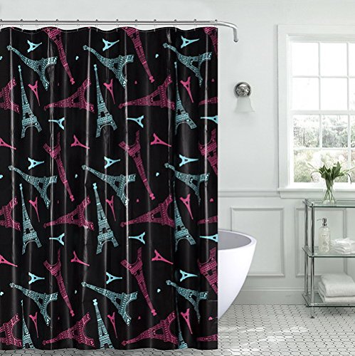 Royal Bath Novelty Paris Glamour Eiffel Tower PEVA Non-Toxic Shower Curtain (70" x 72") with Matching Roller Hooks