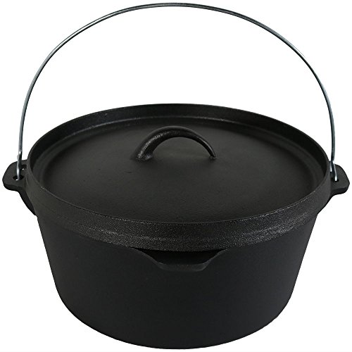 Studio : Sunnydaze Decor Publisher : Sunnydaze Decor Product Description - Pre-seasoned cast iron 12 inch dutch oven ready to cook or bake - Features heavy-duty cast iron construction - Cast iron evenly distributes and retains heat - Recommended for cauldron type cooking - Dimensions: 15" L x 12" W x 6" H with lid; 10" diameter bottom x 5" D