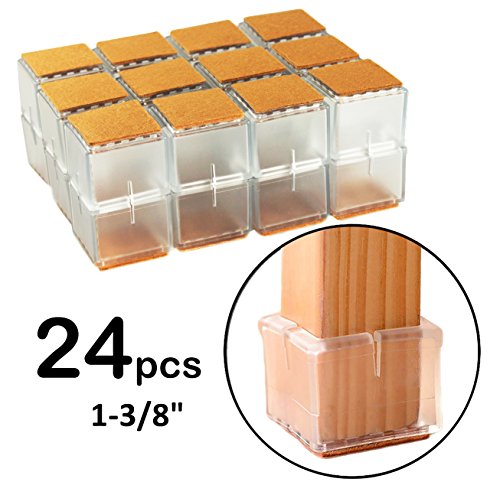 LimBridge Chair Leg Wood Floor Protectors Flexible Silicone Square 1-3/16" to 1-3/8" Clear (Set of 24), #8