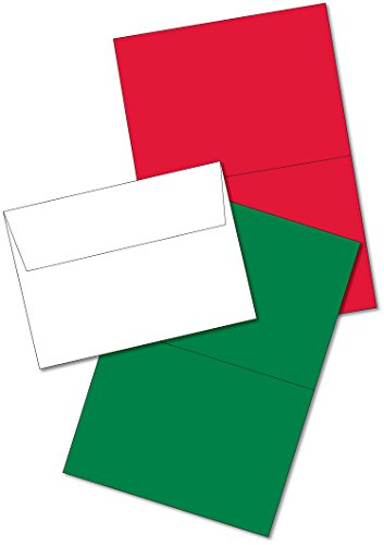 -. Feature : Size 5 x 7 (A7). 65lb. Bright Color Half Fold Greeting Cards / 25 Red Cards 25 Green Cards and 50 White Envelopes Per Pack. / Scored for easy folding. / Inkjet, Laser, & Copier Compatible / Perfect for Greeting Cards, Christmas Holiday cards, Invitations, Weddings or any announcement.