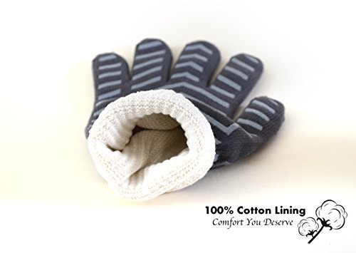 ✔️ COMFORT & SAFE GRIP - 100% cotton lining for the utmost comfort. These heat resistant gloves are equipped with raised anti-skid silicone stripes for premium gripping ability. Reduce the risk of objects slipping out of your hands. Perfect for indoor & outdoor cooking.
