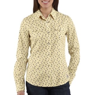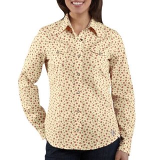 Product Description3.5-ounce, 100% cotton. Two chest pockets with flaps and snap closures. Front and back darts add shaping. Carhartt label sewn on hem.0