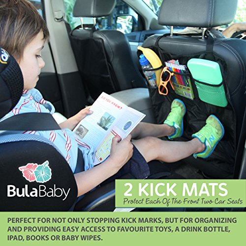 -. Feature : TWO PACK KICK MATS - 2 pack to cover the back of BOTH driver and passenger car seats with these large kick mats that cover 18 inches across and 24 inches down. This mat will cover from the top to the bottom of the back of your seat to easily protect form dirty feet or scuff marks. / CAR SEAT BACK PROTECTOR - Look after your auto car interior with premium car seat protectors. Keep your car looking like new. / DURABLE AND EASY TO CLEAN- The long lasting durable 420D polyester dual layer design, will keep on working no matter how many times your child kicks it with their muddy and wet feet. The water resistant material can be wiped clean with a cloth, or machine washed. / 2 IN 1 KICK MAT & ORGANIZER- Perfect for not only stopping scuff marks, but for organizing and providing easy access to favourite toys, a drink bottle, ipad, books or baby wipes. Your kids will love it. / FAST AND EASY TO INSTALL - A universal elastic strap around the bottom is flexible to fit most SUV's, sedans, subaru outback and mini van seats. The top clips fastens around the headrest. PLUS it comes with our 100% Lifetime Satisfaction Guarantee. Get yours today!