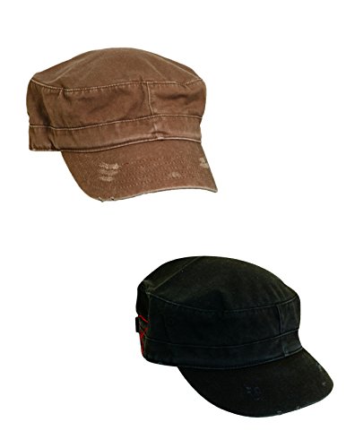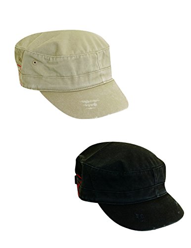 Title : Dorfman Pacific Cotton Distressed Military Cadet Cap (Pack of 2), Khaki/Black