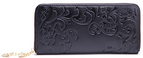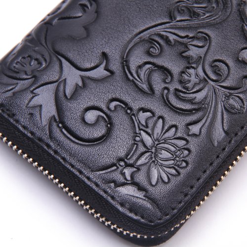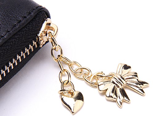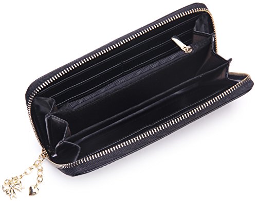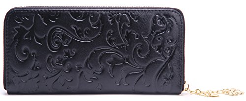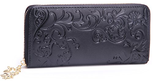 - Title : Borgasets Women's Genuine Leather Slim Zip Around Wallet (Q-Black)