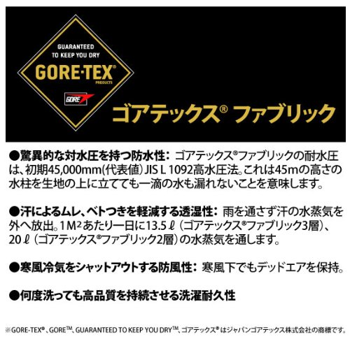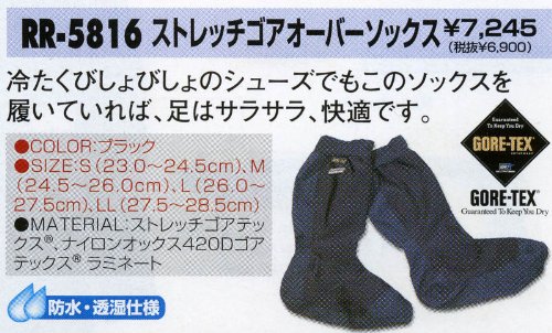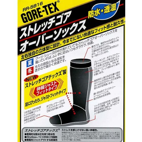 차갑게 # 하 ##고 #의 슈즈에서도 이 삭스를 신어 있으면,발은 보송보송,쾌적합니다.RR-5816스트레치 고어 over삭스는 GORE-TEX를 채용 하고 있습니다. GORE-TEX경이적인 내수성을 가지는 방수성: 고어텍스(Gore-tex) fabric의 내수압은,4.5kg/cm3.30층 건물 빌(45m)에 상당히 하는 수주(급수관)를 세워도1방울의 수도 누락 없는 것을 의미 합니다.땀에 의한《무》《레》#《도》부를 없애는 투습성: 비를 통하지 않고한의 증기를 다른 것에 방출.1평방미터 당첨되어 13.5~20L의 수증기를 뚫습니다.한풍 냉기를 셧아웃 하는 방풍