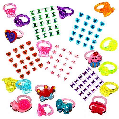 12 Glitter Plastic Rings and 6 Cute Resin Rings
