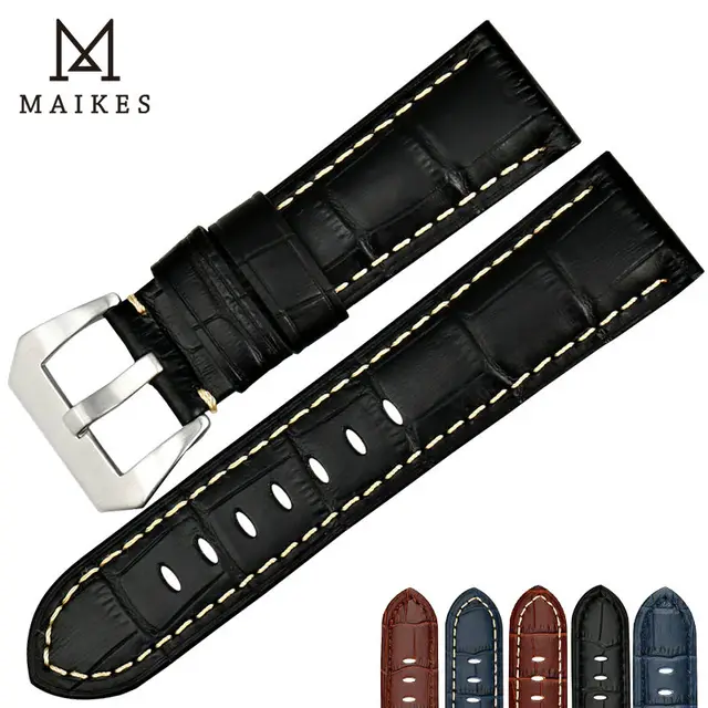 | [해외]MAIKES 새로운 정품 가죽 시계 밴드 22 24 26 미리메터 대한 줄 화석 시계 스트랩 시계 액세서리 팔찌 파네 |