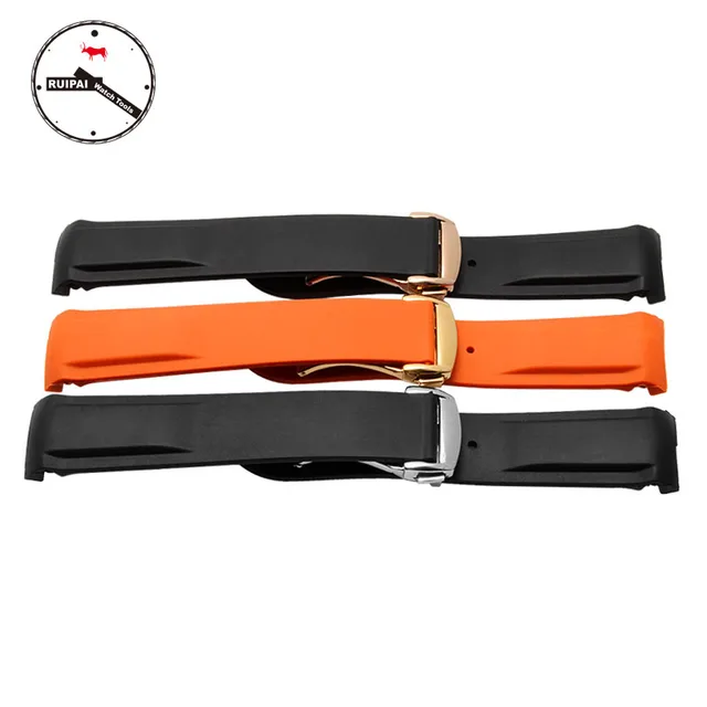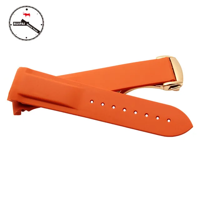 교체 손목 Oranage/블랙 22 미리메터/20 미리메터 Solicone 고무 시계 스트랩 접는 팔찌