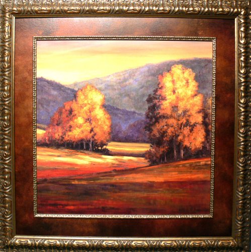 This traditional landscape features an old world frame and textured mat. Artwork and frame are manufactured in the United States by Sundance Art using quality materials such as tempered picture frame float glass, highest quality lithography, acid free paper and ink, and acid free matting.