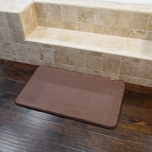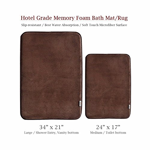 WELLAND 2-Piece Slip-Resistant Maximum Absorbency Super Soft Memory Foam Bath Mat and Shower Rug, 34'' x 21'' & 24'' x 17'', Chocolate