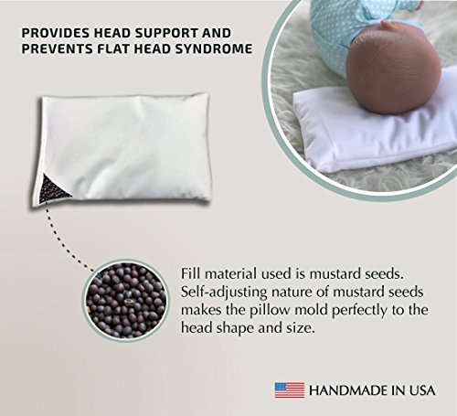 Momma'sJoy NewBorn Baby Pillow Prevent Flat Head Syndrome.Handmade in USA, Natural Material. Based on Ancient Principle, Mustard Seeds Filling, Baby...