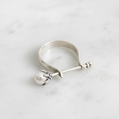 진주 비녀를 연상케하는 독특한 실버반지입니다. 링 가장자리를 오므렸다 늘렸다 하는 방법으로 사이즈조절을 할 수 있습니다. 9호부터 17호까지 착용할 수 있습니다. 실버제품은 너무 많은 힘을 가하면 부러질수 있습니다. 참고해주세요^^ 자세한 사이즈와 디테일은 상세페이지를 통해 체크해주세요.