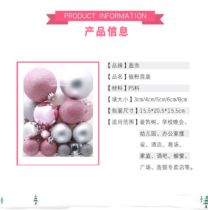 盈浩圣诞节豪华圣诞球装饰品混装银粉彩球圣诞树吊件挂饰家居布置