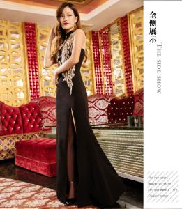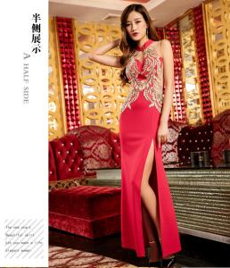 マキシ丈ドレス スリット シースルー 刺繍 ノースリーブ ロングドレス イブニングドレス セクシー 光沢感 フラワー刺繍