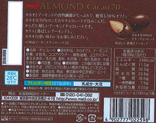 素焼きアーモンドとカカオ分70%の組み合わせで、アーモンドとカカオの健康成分を効率的に摂れる食物繊維たっぷりのアーモンドチョコレートが新登場! 糖質は30%オフ(※「明治アーモンドチョコレート」比)。明治は、赤ちゃんからお年寄りまで、いろいろなシーンでいつもあなたのそばにありたい。おいしさであなたとずっとつながっていたい。昨日より今日、今日よりも明日。あなたの明日をもっとおいしくするために。