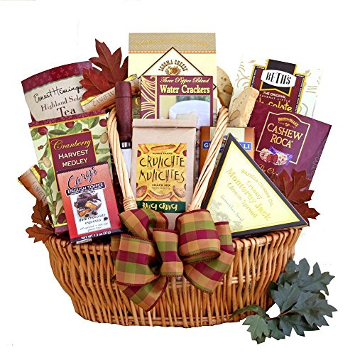 -. Feature : Monterey Jack Cheese Spread • Three Pepper Water Crackers • Cheese Knife • Crunchie Munchie Snack Mix • Sonoma Cheese Straws • Cranberry Harvest Medley • Cashew Roca • Beth's Chocolate Chip Cookies • English Toffee • Ghirardelli Milk & Caramel Bar • Hemingway Select Tea / A great gift for men, women, couples or the whole family or office / Suitable for nearly any occasion including Thanksgiving, Christmas, Birthday, Thank You & Appreciation, Mothers Day, Fathers Day