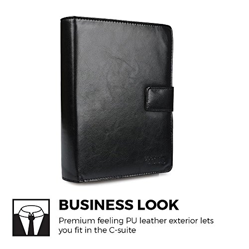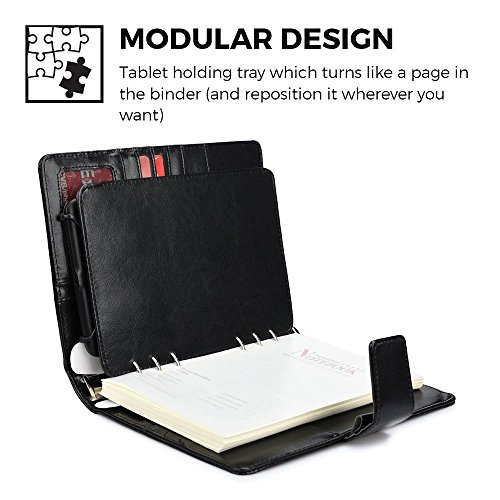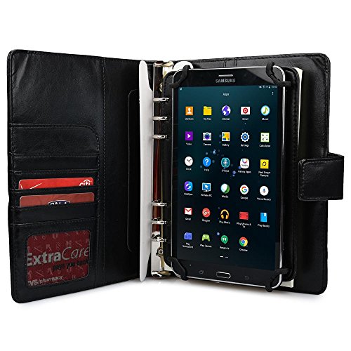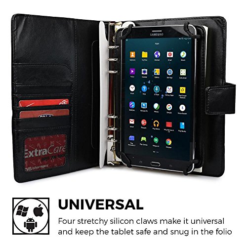 Universal 7-8'' Tablet Case with Notepad, COOPER FOLDERTAB Business Travel Luxury PU Leather Portfolio Protective Case Cover with Paper Notebook & Card Pocket for 7-8'' tablets (Black)