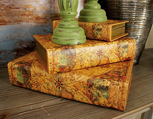 Deco 79 Wood Leather Book Box, 15 by 12 by 9-Inch, Set of 3