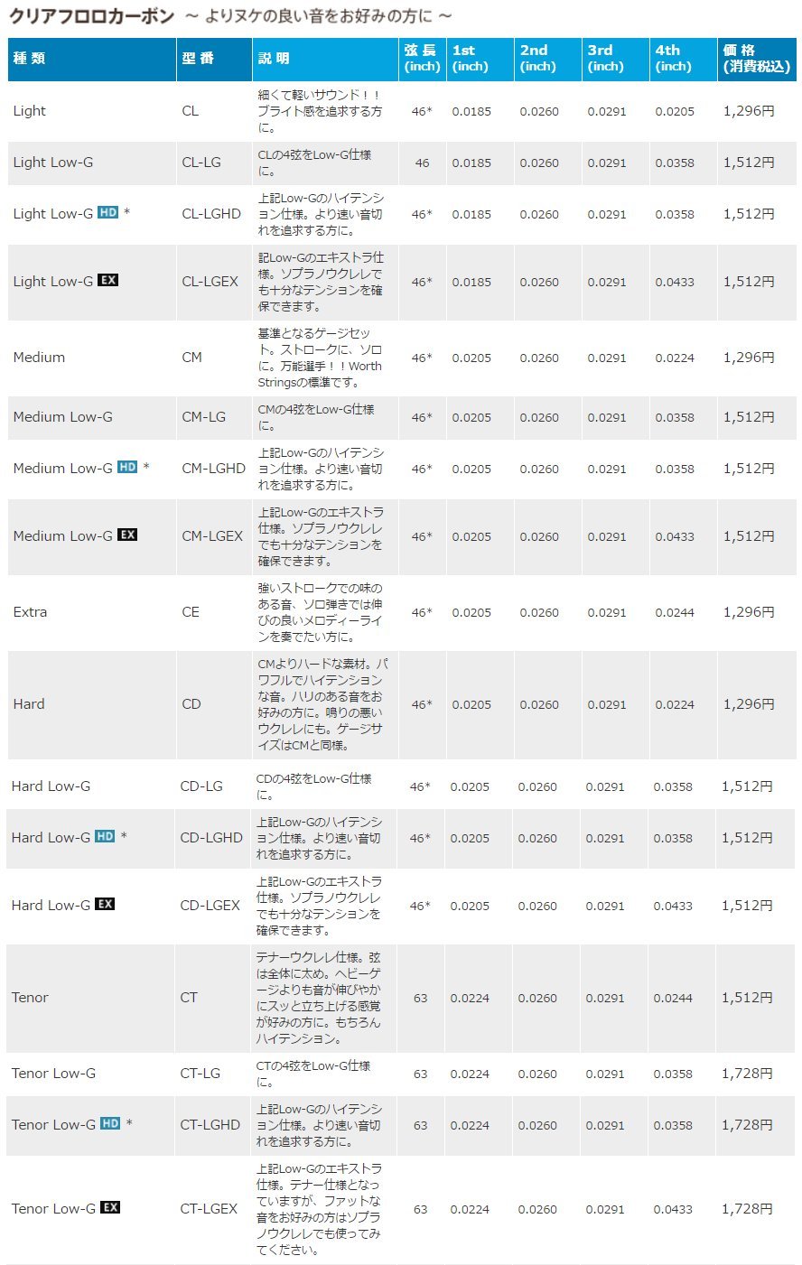 WORTH Worth string BM fluorocarbon chord set soprano / concert