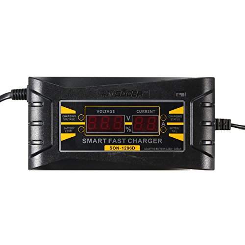 Studio : NDBD Publisher : NDBD Product Description - reverse connecting protection,etc. 4. The smart charging indicator shows charging process directly, which facilitates users to manage the current of the battery. Specification: 1.Product Name:battery charger 6A 2.Model:SON-1206D 3.Input Voltage:110V-240V 4.Output Voltage:12V 5.Rated Frequency:47-63HZ 6.Charger Current:6A 7.Charger Mode:Three-phase 8.Full load efficiency: 87% 9.Working Temperature:-40~ 95 Three-phase Charging Mode: Constant current mode: When the voltage of the battery is lower than the value set by the charger, the charger will work under the constant current mode and supply the constant current for the battery. Constant Voltage Mode: Using the pulse width modulation(PWM) tech to control the charging current and output voltage of the charger which ensures the battery is fully charged and avoids over charging. Floating Charge Mode: When the voltage of the battery is approaching the value of the constant voltage mode, and the current will cut down to the given current gradually, that means the battery power is full, then the pilot lamp will turn green and the fan will stop working. The charger will turn the mode into floating charge mode automatically. At this moment, the battery can be stopped charging or keep on floating charge for half an hour. Functions: 1. Evaporation Function 2. Automatic Trickle Function 3. LCD Display 4. Soft start function 5. EU plug or Free plug adapter 6. Adaptive battery: 12ah ~100ah Note: The product comes with a free adapter Package Included: 1 X Battery Charger 1 X User Manual