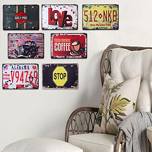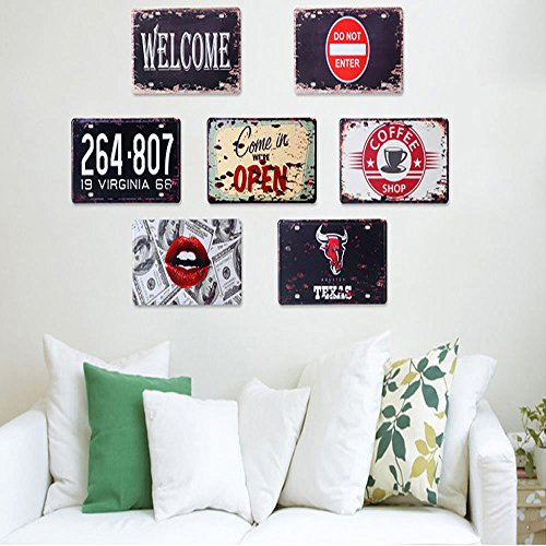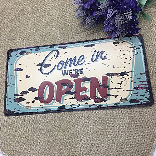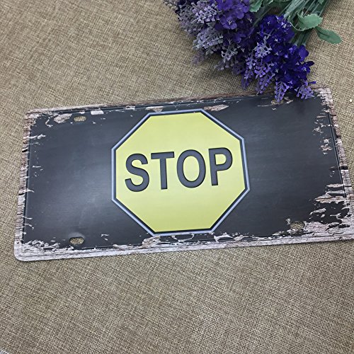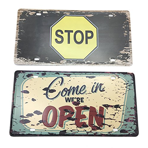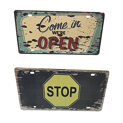 HUELE 2PCS/12''X6'' Funny Vintage Metal Tin Sign Plaque Wall Art Poster Cafe Bar Pub Plate Decor(Come in open+Stop)