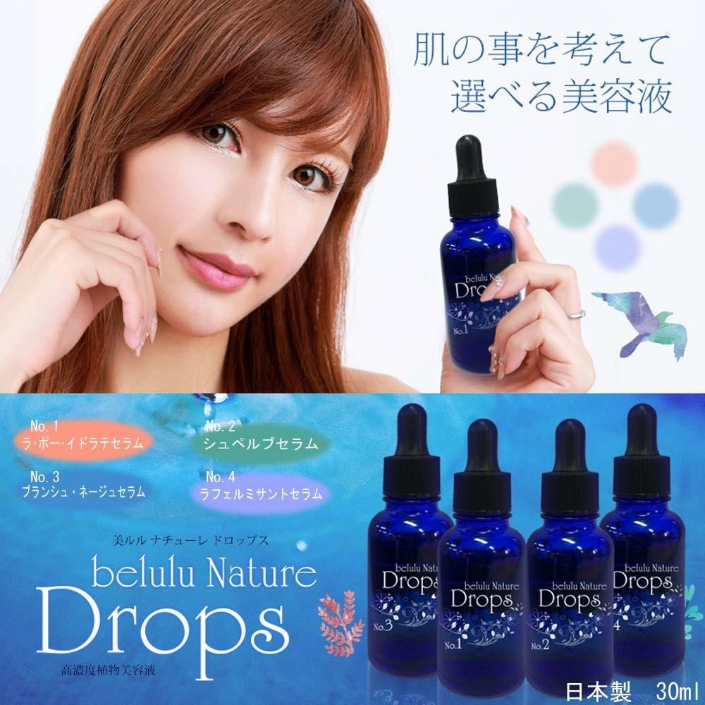 </c天然の恵みがぎゅっと詰まった高濃度植物美容液。乾燥や毛穴など、お肌の悩みに合わせてお選びください。 製造国:日本 成分:【No.1】ラ・ポー・イドラテ セラム水、BG、ペンチレングリコール、カルボマー、水酸化Na、アセチルヒアルロン酸Na、キュウリ果実エキス、セイヨウキズタ葉/茎エキス、アルニカ花エキス、セイヨウニワトコ花エキス、ゼニアオイ花エキス、パリエタリアエキス、レウコノストック/ダイコン根発酵液【No.2】シュペルブ セラム水、BG、ペンチレングリコール、グリセリン、カルボマー、スイカ果実エキス、リンゴ果実エキス、ヒラマメ果実エキス、水酸化Na、乳酸Na、レモン果実エキス、PCA-Na、セイヨウアカマツ球果エキス、スギナエキス、ホップエキス、ローズマリー葉エキス、レウコノストック/ダイコン発酵液【No.3】ブランシュ・ネージュ セラム水、BG、ペンチレングリコール、カルボマー、水酸化Na、1.2-ヘキサンジオール、プラセンタエキス(ウマ)、ブドウ葉エキス、セイヨウキズタ葉/茎エキス、アルニカ花エキス、セイヨウトチノキ葉エキス、ハマメリス葉エキス、セイヨウオトギリソウ花/葉/茎エ【商品名】美・ル・ル(belulu-ビルル-) 高濃度植物美容液 ナチューレドロップス 30ml No.1ラ・ポー・イドラテセラム