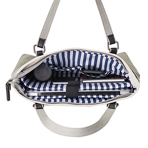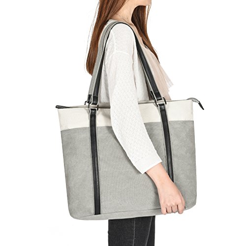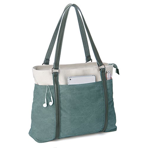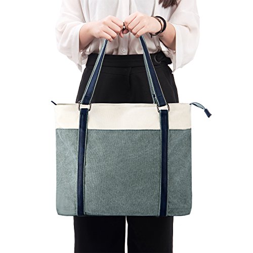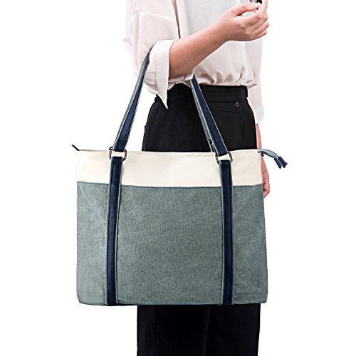 Binding : Personal Computers Product Description Description: Carry your laptop in style with this GRM laptop tote. This laptop tote is a must have. It features a neat design with two top handles and contrast stitching. Most laptops up to 15.6 inches will sit well in this tote. With several compartments and pockets for business cards, keys, a phone, pens, and other supplies, this canvas laptop tote is handy to travel with. Features: ¡I Tote style handles can be carried or worn over the shoulder ¡I Spacious and practical for business, office, travel, school or shopping. ¡I Easy hold laptop up to 15.6 inches. ¡I Soft foam padding and strap closure well protect your laptop. ¡I More small compartments and pockets for cards, keys, phone, or pen. Specifications: Material: Exterior: canvas; Lining: Soft peach-skin fabric Color: Gray/Gray Green/Blue Exterior Dimension: 16"L x 4.7"W x 13.7"H (The strap is 9.4 inch high) Size: Medium How to maintain the canvas tote bag? - Wash it with clean water in ordinary temperature. - DO NOT wash it in hot water and alkaline detergent. - Hang to dry and store in ventilated place instead of sun exposure. - Wash Separately to avoid staining. - DO NOT soak in water for too long. ATTENTION PLEASE 1. Please allow little color difference due to the monitor and light brightness 2. Please allow 0.3"-0.9" in size error due to manual measurement. And please confirm the size info according to our description instead of the photos. 3. Please allow the smell in the course of packing and shipping, but it will be disappeared in a few days' air out. 4. If there are any other questions, please feel free to contract us. We promise to provide the best customer service ever. 0