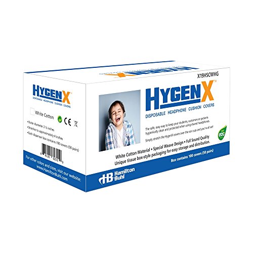 -. Binding : Electronics -. Brand : HygenX -. Color : white -. EAN : 0753340623742 -. Feature : The must have accessory for headphones and headsets in any shared environments / Safe, easy way to help halt the spread of germ and bacteria / Biodegradable, renewable and sustainable cotton / Come in unique "tissue box" style packaging for easy storage and distribution -. Label : HamiltonBuhl -. Manufacturer : HamiltonBuhl -. MPN : HB44 -. PartNumber : HB44 -. ProductGroup : Speakers -. ProductTypeName : HEADPHONES -. Publisher : HamiltonBuhl -. Studio : HamiltonBuhl -. Title : HygenX 100% Cotton Sanitary Ear Cushion Covers (2.5" White, 50 Pairs) - For On-Ear Headphones & Headsets And Free Liberty Microfiber Cloth -. UPC : 753340623742