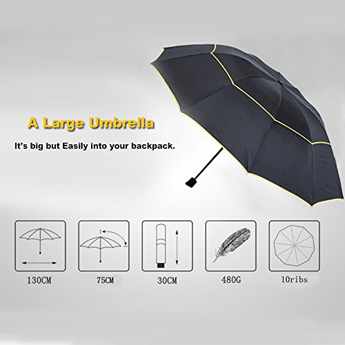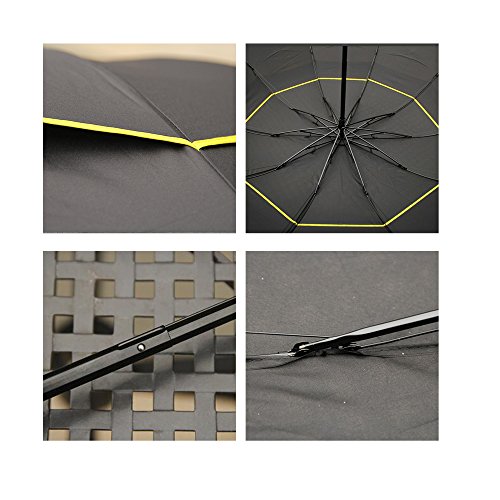 -. Feature : Steel. / Extra Large Size: The travel umbrella measures 60"(150cm), easily covering two people. It is exactly large golf umbrella that providing a large footprint and keeping the rain off of you. As well, enough size that two people can fit under it, but not too big as to be awkward on a sidewalk. It is protection for everyone, a good companion for the great outdoors. Take it while walking the dog, watching your favorite sports, or pick up your school children. / Mini Collapsible Size, Super Light & Portable: With 11.8inch(30cm) closed folding length and 16.9oz weight, it is quite short and ultra-light regarding the big open size.It merges the benefits of a full size golf umbrella with the convenience of a folding umbrella, big enough to protect adequately yet small enough to be out of the way when stored. Perfectly fits in the glove compartment of your car, sports bag, laptop bag, tote, college backpack, business briefcase or vacation luggage. / Strong Construction,10 reinforced steel ribs. The Windproof Umbrella is stronger than the most umbrellas which are made of 6 to 9 ribs. Firm center pole & durable ribs and stretchers flex slightly to withstand gusts and the Double Vented Canopy construction allows the wind to pass through the vents preventing it from flipping over and breaking. A perfect windproof golf/travel/business umbrella for you. / Wind, UV & Rain Resistant Fabric: The canopy is made from premium breathable 210T pongee fabric, windproof and waterproof, totally prevents leakage and dries quickly. The compact travel umbrella keeps you away from wind and heavy rain and hot sun. There is no have a strong paint taste to harm health. A breeze to pen/close with the simple manual mechanism, it is fast and smoothly, and avoid all the headaches of automatic drawbacks. It is fully a long lasting umbrella you can trust.
