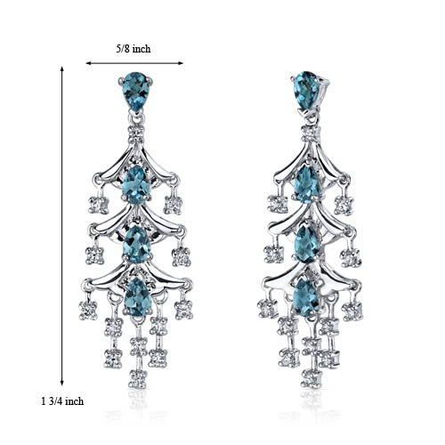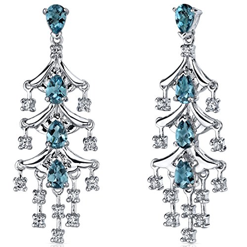 Center Stone: 8 pieces Genuine London Blue Topaz, Pear Shape with Checker Board Top, 6 x 4 mm, 4.00 carats total weight, Caribbean Blue Hue with Brilliant Sparkle. Side Stones: 26 pieces Super Sparkling Machine Cut White Cubic Zirconia. Earrings: 9.50 grams, Pure Sterling Silver with .925 stamp, Earrings feature Stud posts with Bullet backs, exceptional Design, Craftsmanship anding. Perfect gift for Mothers Day, Birthdays, Valentines Day, Graduation, Christmas or just about any other occasion. Money Back Guarantee. Includes a Signature Gift Box & style SE7192Feature
