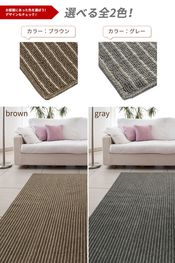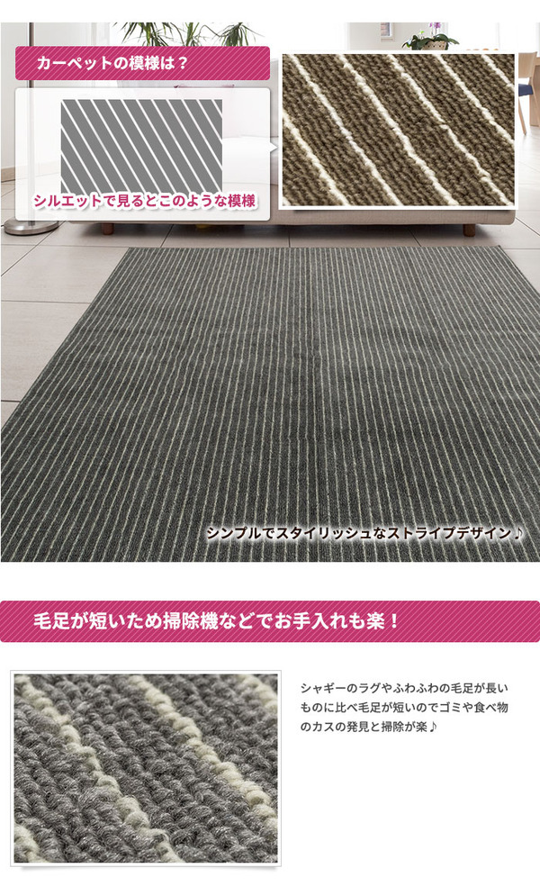 カーペットの模様はストライプ柄で毛先はループ状になっています。