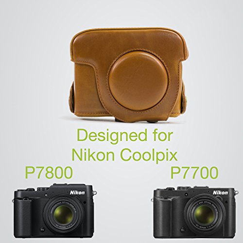 MegaGear Hellbraun Leder Kamera, Tasche fur Nikon COOLPIX P7700, Nikon COOLPIX P7800 Objektiv Digital Kamera