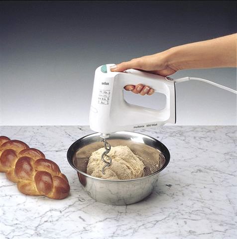 ● Mixer suppresses scattering of dough, whisk while taking in air well.
