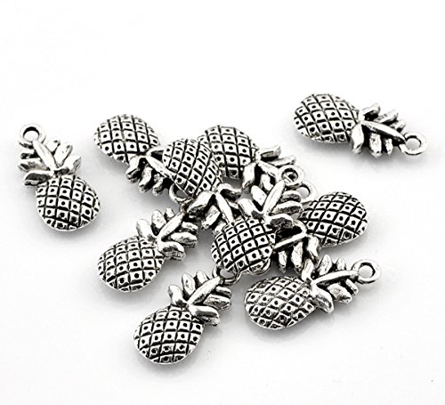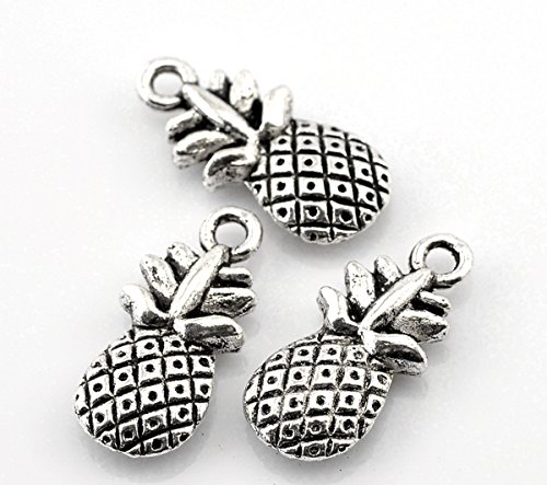 Housweety 50PCs Silver Tone Pineapple Fruit Charm Pendants 19x9mm(6/8"x3/8")