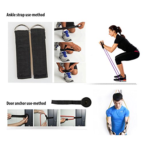 ★Maintenance: Avoid cutting the resistance band. After training, please clean it with wet cloth and then storage in bag. Don't make the resistance band contact with alcohol, oil, kerosene, etc. Don't be exposed to the air and the sun for a long time. ★Regular Inspection: always check the resistance band, find out the safety hazards in advance and avoid dangerous occurrence. When a broken crack occurs in the resistance band, the link device should be replaced immediately when it is damaged. ★Fixed: Please fix the resistance band with the special strap on a solid object. When using the door anchor, please make sure that the door gap will not allow the door anchor slip. Do not attach the resistance band to the sharp object. ★When doing heavy weights training, please ensure that when the resistance band breaks, the surrounding environment will not harm your body.