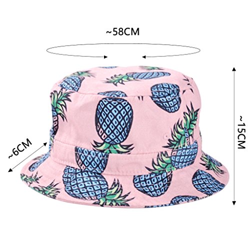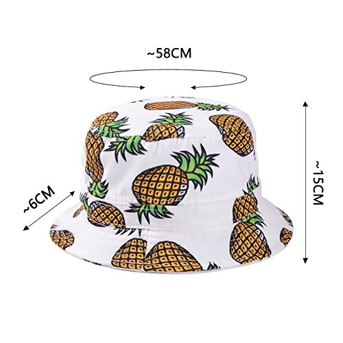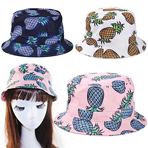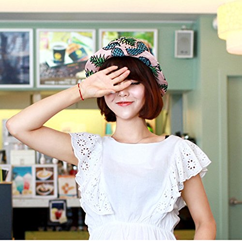 Dealzip Inc Ladies Women Headwear Shop Pineapple pattern Wide Caps Fashion Rim Flat Fishing Buc...