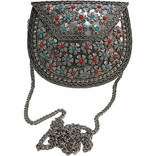 (Padma Craft)/Accessories/Handbags/DIRECT FROM USA/Indian Vintage design Silver-Toned Metal Coral Turquoise, Agate Novelty Bag Purse